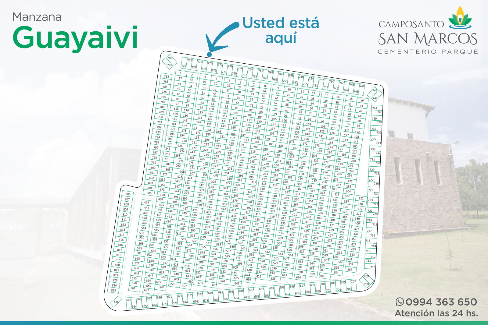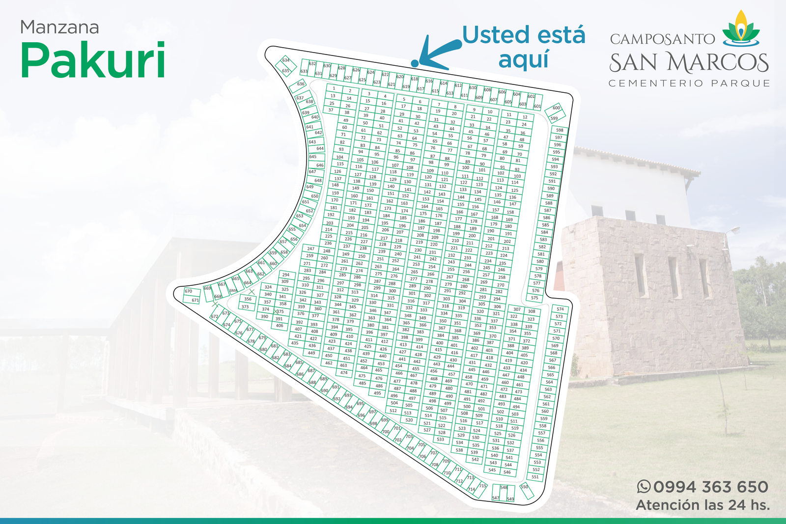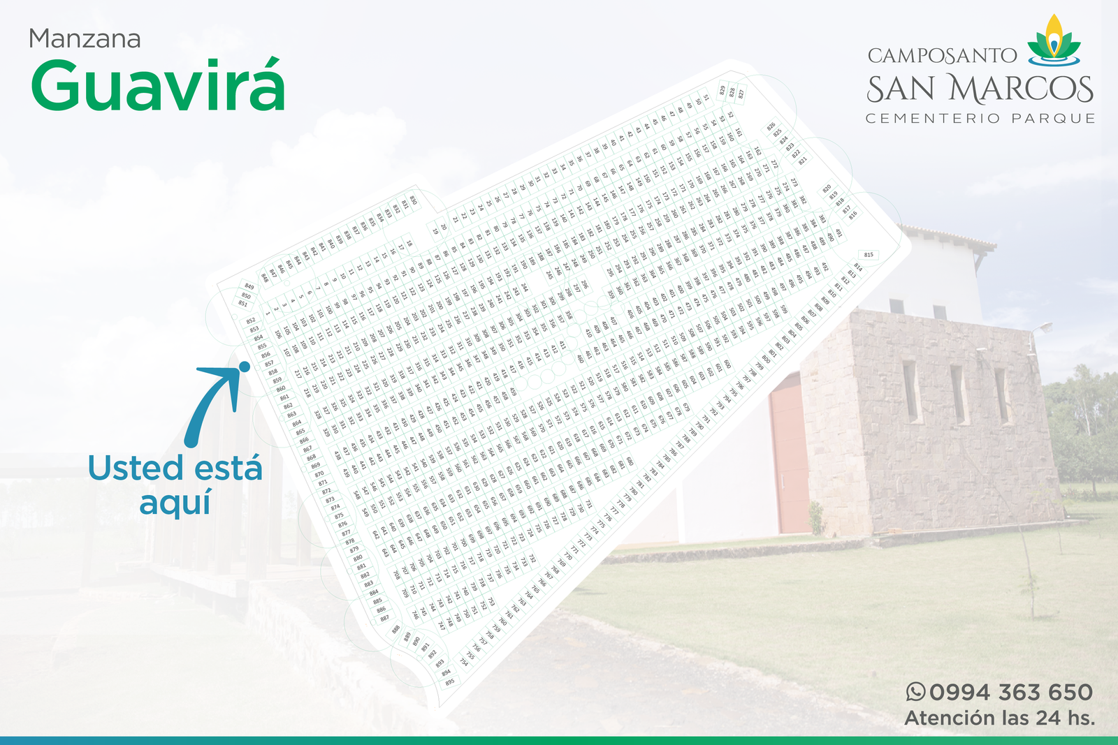 Camposanto San Marcos posee acuerdos especiales con todas las funerarias de la región: Presidente Franco, Ciudad del Este, Minga Guazú, Hernandarias, Santa Rita y alrededores (Ver listado de funerarias). Basta que el cliente tome contacto con nuestra administración, para que nuestro personal experimentado se ocupe de coordinar lo necesario, de acuerdo a los requerimientos del cliente. Incluso, si el cliente así lo solicitara, nuestro personal se ocupará de gestionar la documentación relacionada con los servicios de inhumación.